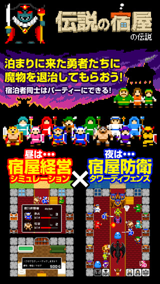 玩家在本作中必须经营一间传说中的旅馆,玩家要为来投宿的旅者准备房间,设置早午晚餐,还要加强自己旅馆的防御!为什么呢?因为你的旅馆晚上会有魔王军来偷袭!玩家要借住来投宿的旅客的力量,来击败魔王军。