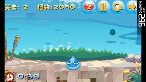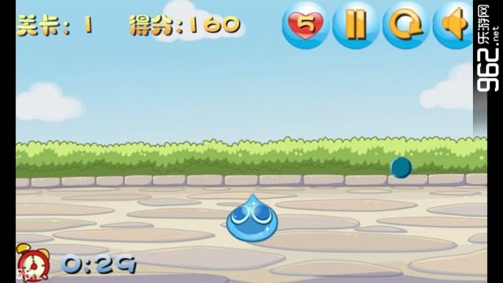 滑动水滴控制水滴移动方向,游戏开始时候生命值是5,被蓝色球打中,生命值减1,当生命值为0时,游戏结束。屏幕右下角有游戏倒计时,必须闯关成功才能进入下一关。