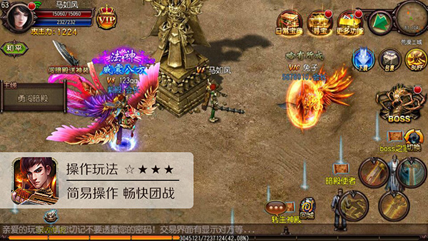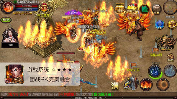 《傲视沙城》是一款即时战斗型游戏,有战士、道士、法师三种职位供玩家选择,您在游戏内可以通过攻打副本BOSS、玩家爆装备,可以通过装备来强化自己,提升自己的战斗力。更有一些列PK活动供您体验PK的快感。