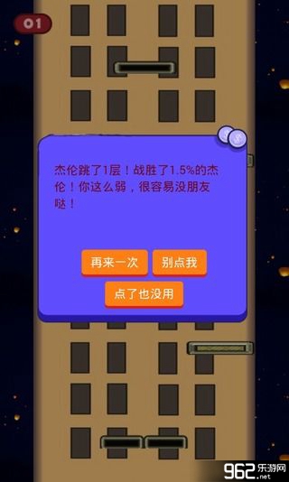《杰伦上天台》是一款非常好笑而且有意思的手机游戏,这一次玩家将不在是下100层了,而是上100层,杰伦能在玩家手中上100层吗?我们不妨一试,速度下载玩耍了。