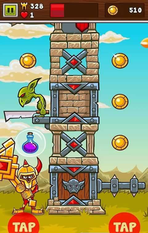 粉碎高塔是一款益智敏捷类休闲手游,你将扮演全副武装的骑士前去拯救公主,历尽千辛万苦之后终于找到了公主,他被困在敌人的高塔之上,你必须一边战斗,一边敲碎高塔让公主安全的下来,你能顺利的救出公主吗?