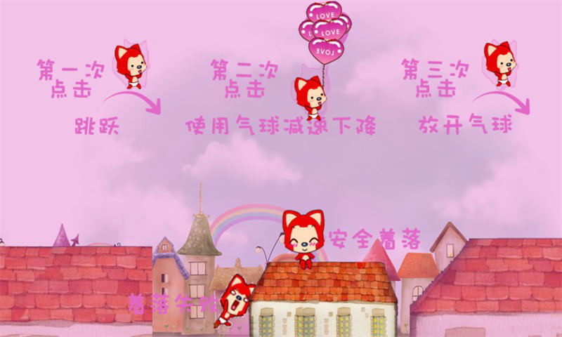 阿狸飞呀飞是一款趣味性十足的飞行类休闲游戏,游戏中的角色是我们最可爱、Q萌的阿狸,对于阿狸相信很多玩家朋友们都不会有太大的抗拒了!屋顶上的空气就是好啊~看我跳过去!咿,下一个屋顶好远......不怕!气球助我!下一个屋顶,我来啦~