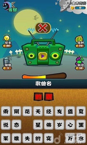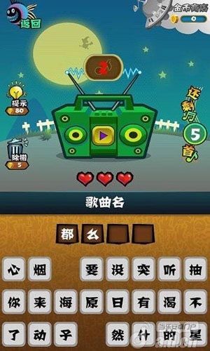 全能歌迷是一款比较新颖的答题游戏,游戏中玩家需要通过听音乐猜歌名,这种玩法对于喜欢音乐的玩家来说是个不错的享受,想要看看自己听过多少歌曲吗,那么来测试一下吧。