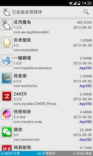 不错的一款应用管理软件,支持批量备份、还原、安装和对APK程序的一些管理及缓存的清理功能,功能相当全面,自带中文。