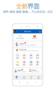 5.车主用养车点点并不仅仅只能洗车。在app的首页,记者在使用中观察到,针对汽车的其他非洗服务,如做美容、找救援、车保养、喷油漆、易损件、换轮胎、高端车养护等,一应俱全。此外,非交易的功能如查违章、问问专家等,也都非常简单实用,一键完成。
