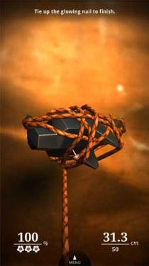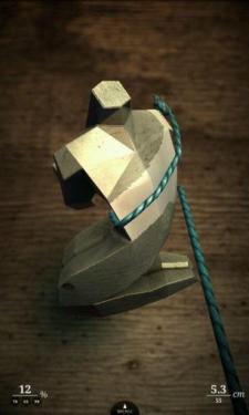 这款游戏的主要内容就是用一根长度有限的绳子去缠绕各种造型的木雕,绳子的一端被钉在木雕上,玩家需要通过旋转去缠绕木雕,木雕被缠绕部位的越多(被缠绕时,木雕的表面会被喷漆),最后积分越高。