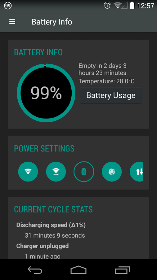 《电池小插件2015重生版 Battery Widget Reborn 2015》是一款功能强大,操作人性化的电池管理工具,它能全方位检测你的电池使用情况,实时提供如电池温度、电压、电量使用历史、上次充电时间、剩余电量使用时间等电池相关信息。