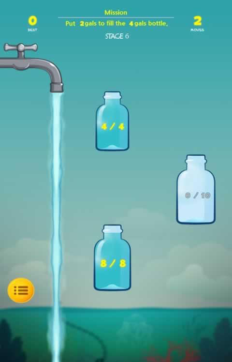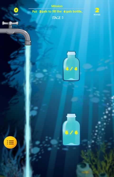 《水容量2 Water Capacity 2》是一款好玩的益智游戏。游戏中,你有两个容量不一的瓶子,你需要按照关卡要求,将某一个水瓶里面盛满规定容量的水就可以了,游戏简易上手但总体而言还是相当消耗脑细胞的!