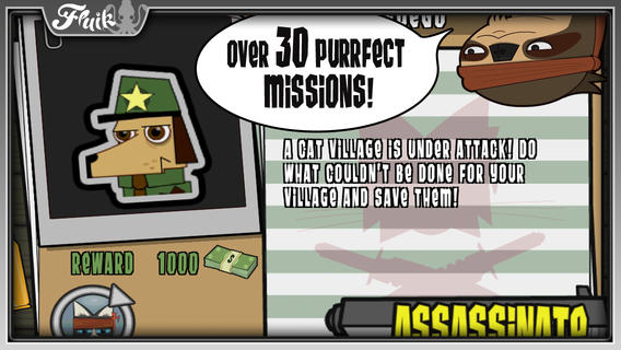 《刺客小猫 Kitten Assassin》是一款射击类游戏,小猫为了摆脱独裁者的控制,于是走上了暗杀的道路。30多个刺杀任务,各种场景,你能应付吗?你可以赚钱,然后升级自己的武器,让你刺杀更加容易!游戏玩法很简单,晃动屏幕来控制方向,触摸屏幕开枪射击。