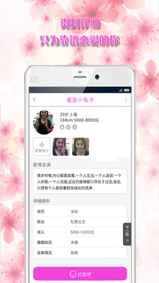 让您在任何时间,只有拿起手机就能找寻联系心仪的对象。同时,我们对已注册会员进行了详细的分类,您可以看到我们根据您的征友条件匹配推荐优质用户;您也可以根据自己的条件,搜索筛选符合您的同城异性,让缘分不再等待,自己掌握自己的幸福。