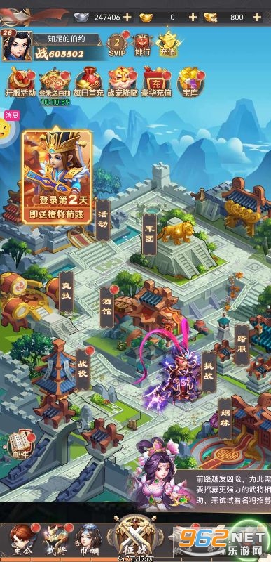 《大三国时代》最为核心玩法之一”国战“,其玩法完全不同于市面上一般游戏,创新式的加入了建筑防御系统,不再单纯的兵种肉搏拼数值定胜负。想取胜必须,在讯息万变的战场中带领你的军团运筹帷幄使出三十六计才能制霸天下!