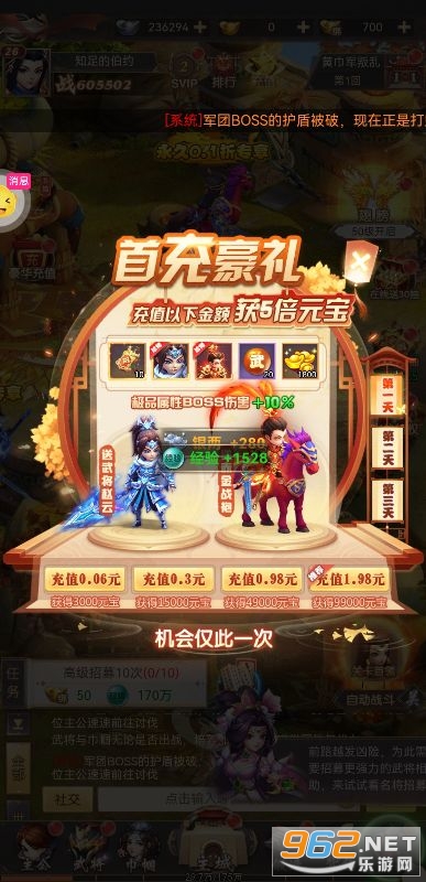 ★首充额外5倍返利,送武将赵子龙、绝版战袍极品百分比属性副本无压力