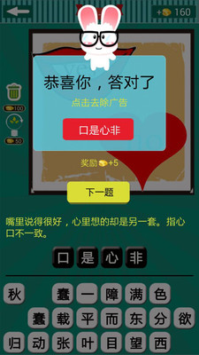 3、准确地猜出本题目才能进入下一题哦,实在不行,可以使用金币进行提示。