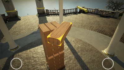 在游戏中,玩家要做的就是利用里面提供的虚拟摇杆,就着塔取材,将塔垒得更高。需要注意的是,虚拟摇杆有两个。左边的那个摇杆是给你控制视角或者被选中的木块前后左右平移的。右边的那个,是给你控制视角或者木块左右旋转或者上下挪动的。玩家如果需要挪动哪个木块,要先选中一下,让木块发亮,才可以开挪。挪动时要小心,要是塔倒了,你就只能重玩了。