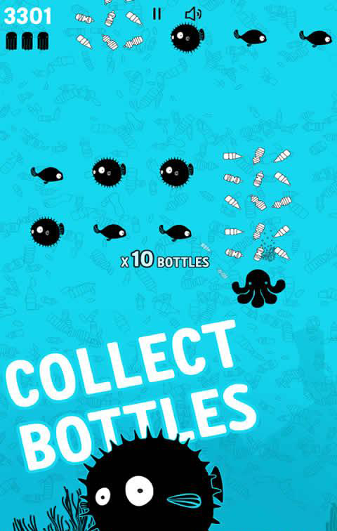 深海保卫战是一款画风简单却蕴含深意的竖版跑酷手游,游戏以浅蓝色为背景,带玩家来到美丽的海底世界,然而白色的人类生活垃圾是那么的显眼,你需要扮演章鱼在向上游的同时收集这些垃圾,还给海洋美丽,干净。