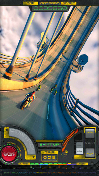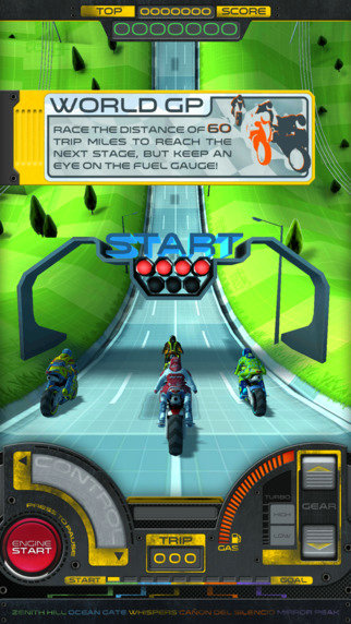 在本作中,玩家要驾驶摩托在一条并不宽敞的赛道上疾奔,不需要担心会有迎面而来的货车将摩托撞翻在地,也不需要担心被其他车手抢掉了名次。