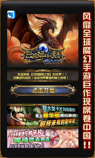 巴哈姆特之怒是一款号称史上最华丽的魔幻题材回合制在线卡牌游戏,该作中从北欧神话到东方的传说,各种魔幻角色无奇不有。高品质的画质、上百张精美绝伦的卡片,让你在设备上也能体验到大型作品的乐趣。该作中卡片分为人、神、魔三个种族。人、神、魔三大属性自由选择、强化,进化出只属于您的最给力卡片。攻击,防御自由编组,向所有玩家发起挑战,更可赢取丰厚的战利品。加入骑士团,通过最强骑士团决定战取得限定版豪华报酬,多种玩法让你欲罢不能。