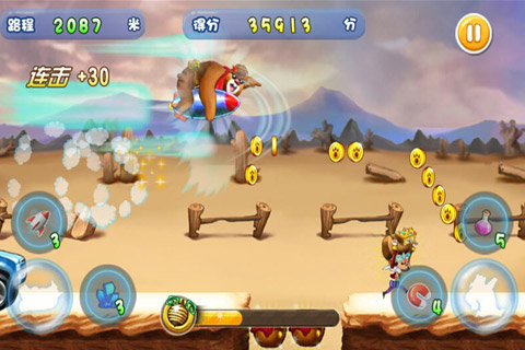 《夺宝熊兵》是一款节奏感极强的安卓横版跑酷游戏。森林里不知道从什么时候突然出现了无数的金币宝藏,还有很多好玩的道具,这可把我们的熊主角乐坏了,但是金币宝藏也引来了其他窥觎者,都在虎视眈眈蠢蠢欲动着,赶紧行动吧,越过重重障碍,克服一切困难,把宝藏通通都揽入怀中吧!