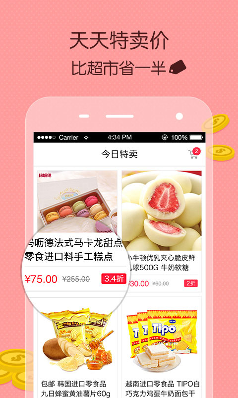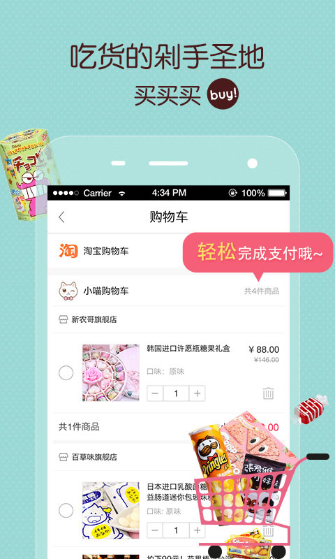 零食小喵是一款为吃货们打造的花样进口零食低价卖的实用app,各种品牌进口零食,全部零税购买哦,许多在超市中并不常见的小零食,并且死贵死贵舍不得买的零食,在本软件中都有低价折扣,尝遍全球零食不是梦!