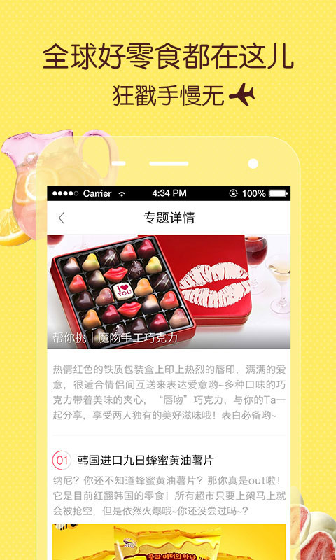 3.『专题推荐』:“全球最适合情侣的零食”“最适合宅家追剧的十大零食”“全球12国最畅销泡面礼包”各种好吃好玩的零食专题等你来发现!