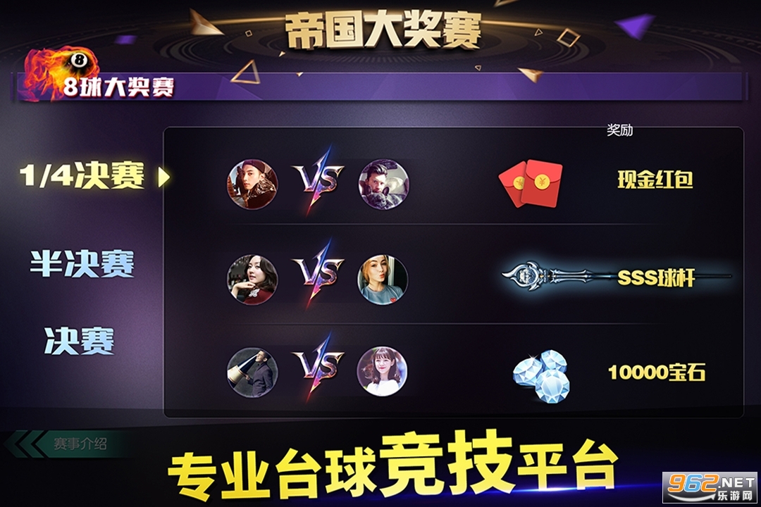 想从草根进阶成台球明星?就来台球帝国吧!我们为广大台球爱好者精心设计了最真实的2D台球游戏,解密各种花式台球的玩法,挑战世界级台球明星大腕。在这儿,不只有战胜对手的快感,更有化茧城蝶的涅槃式体验。