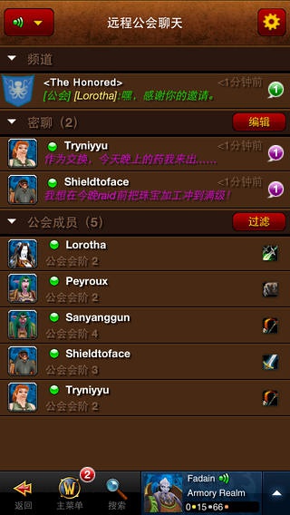 《魔兽世界》手机英雄榜让您可以随时随地关注《魔兽世界》的方方面面,甚至不用登录游戏。您可以通过您的安卓移动设备查看您的所有角色信息(包括他们的属性和装备);使用拍卖行;搜索角色、物品和公会;进行公会聊天;以及更多。