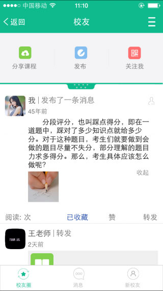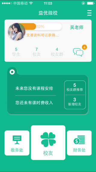 “校友”定位在熟人推荐招生,是老师维护教学人脉的强大工具,任何家长使用扫描或者识别老师微校二维码的方式,可以通过益优微校服务号关注老师成为老师的粉丝,老师可以通过微校将自己的家长粉丝分组,管理,推送优质内容,给老师一个独立运营教学粉丝的空间。“校友”同时通过老师熟人二度人脉,老师熟人群推荐等方式为老师提供快速搭建老师圈熟人人脉的功能。“校友”让您有粉丝,有人脉,有生源!!