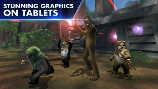游戏讲述光明与黑暗之争将在星际大战各著名场景如霍斯、贝斯平、塔图因、基欧诺等上演。玩家只要善用各个角色的特殊攻击技能,即可轻松击溃对手,如达斯.西帝的雷电原力、丘巴卡的愤怒原力等,让任何敌人都俯首称臣。