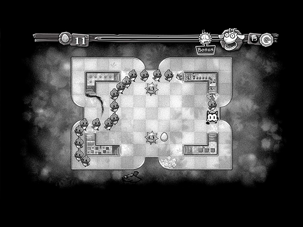 《Pix The Cat》的玩法和《贪吃蛇》十分类似,游戏中会出现各种各样的迷宫,玩家要操控一只猫咪在迷宫中穿梭。每当小猫吃掉关卡中的鸭蛋后,就会变成小鸭子跟在猫咪的后面,再把鸭子们都丢到洞里就可以得到分数了。当然,和《贪吃蛇》玩法一样,猫咪不能碰到身后的鸭子,否则从头再来。