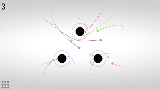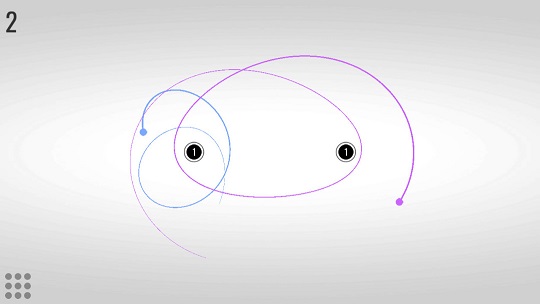 游戏拥有清新的画风和超赞的物理效果。游戏中的圆圈拥有引力,你需要的是拖出轨迹线围绕着它运转。听着很简单,但几个引力相互作用下,你会发现原来是如此的虐心。