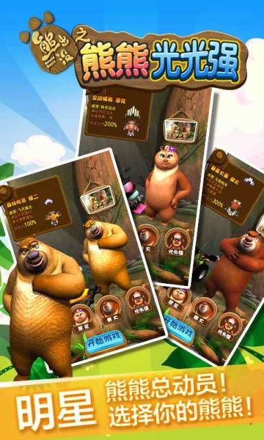 熊熊光光强是一款由人气动画熊出没改编而来的敏捷类动作射击手游,精致熟悉的卡通动漫画面与动画片相映成趣,熊大熊二和光头强又开始了一场新的战争,但是这次有更多的角色加入,快来解锁它们玩耍吧!