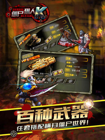 《僵尸猎人K》安卓名称《暴击僵尸合金弹头》,本作以较为血腥击杀各类僵尸吸引玩家瞩目,以多样的武器枪械养成为卖点在游戏中玩家需要通过射击来消灭源源不断的僵尸!
