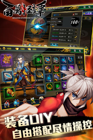 《百万怪谭》是广州游爱小李飞刀工作室自主研发并运营的一款集齐动作、闯关、策略于一体的横版动作手游大作。《百万怪谭》画面瑰丽,玩法丰富,极致的战斗体验配合劲爆的打击感,让你在斩妖除魔途中,体验中国式百鬼夜行,感受不一样的神鬼怪谈!2015年ARPG爱好者绝对不容错过的手游!