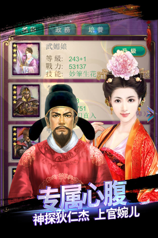 游戏独创武媚娘双成长系统,专属主线玩法,多种精彩副本,策略养成为一体;