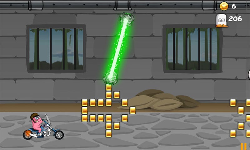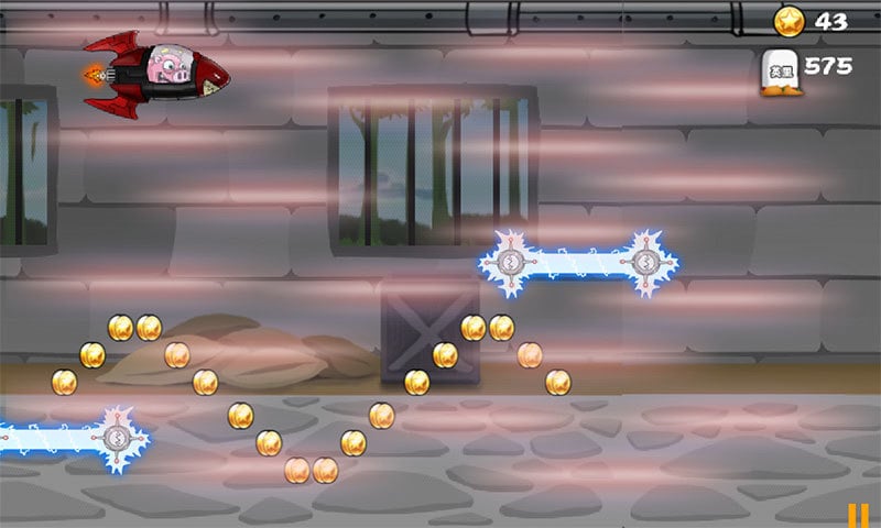 一款超炫酷的休闲游戏,玩家操控喷气猪一路寻找金子,同时闪避开墙上的绿色激光,还有突然飞来的大刀。但只要找到神级装备,激光大刀一切都是浮云,一会变身超人,以超音速飞行,这酸爽太酷了;不一会又变身骑着哈雷的牛仔小猪休闲的在兜风,最后还把火箭飞行器都用上了...神级的装备疯狂的小猪!