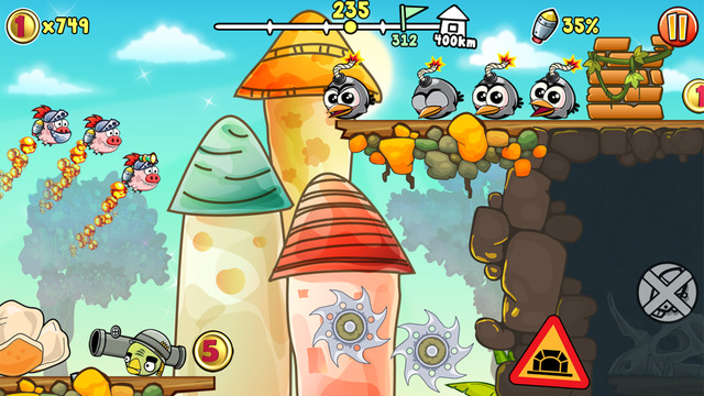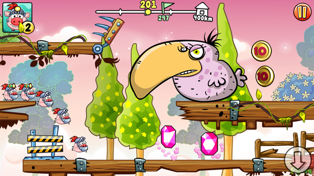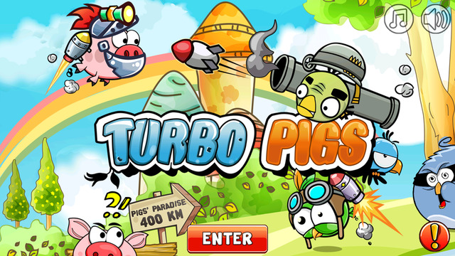 《涡轮飞猪》(Turbo Pigs)是一款闯关冒险类的游戏,可以说这款游戏跟《愤怒的小鸟》有着很大的渊源,可以说这款游戏是《愤怒的小鸟》的续集了。