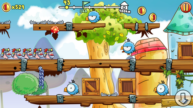 整款游戏从游戏的故事背景来说,它具有很好的创新能力,懂得如何让游戏深入人心;从游戏画面上看,仿照了愤怒的小鸟简单的绘画风格,让玩家与游戏更为亲近;从游戏音乐上说,清新动感略带点俏皮的音乐,让玩家有着更好地游戏体验。美中不足的是,游戏中途一旦失败必须重头再来,显得较为严格,这样多少会减少玩家的耐心,建议添加原地复活系统,增加游戏的趣味性跟可玩性。