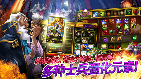 -由5种种族组成的兵力,英雄可进化及使用技能,还有能力挽狂澜的魔法技能,合理利用道具,也是重要策略之一;