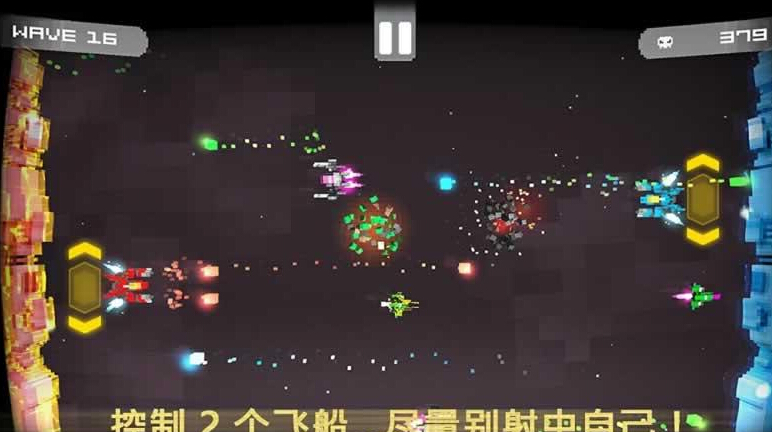 由于这两台战机被固定在左右两侧,并且只能上下移动,而敌人则会从中间出现并向左右两方进攻,玩家只要在敌机触及屏幕两侧的墙壁前将其消灭即可。