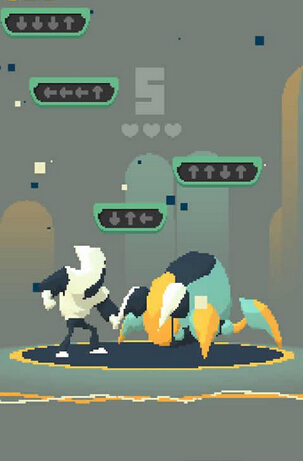 面对强大的怪兽,普通的拳法似乎并不能对它造成明显的伤害,所以需要借助天空中落下的符文的力量,玩家需要根据符文上标示的方向在屏幕上做出相应的划动,这样可以激发英雄使用神拳痛打怪兽!