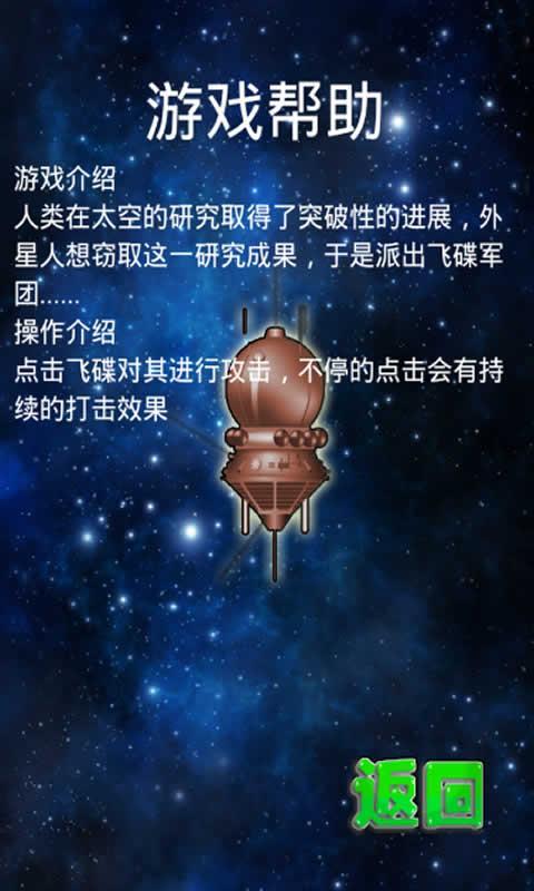 游戏的玩法非常的简单,只要点击飞碟对其进行攻击,不停的点击会有持续的打击效果,喜欢这款游戏的玩家赶紧加入体验一番吧!