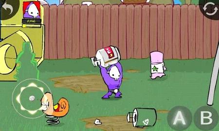 有一天暴力爸爸带着儿子经过和平镇的小公园,爸爸把儿子放下车,学习怎么跟附近的小朋友相处。 你要操纵紫色的暴力儿子,把看到的小朋友都打得半死不活。