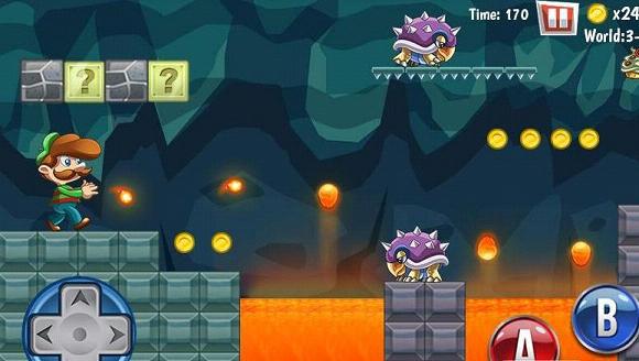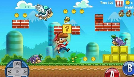 屏幕两边分别有控制方向和弹跳的按键,并且游戏拥有不错的画质,喜欢玛丽的玩家千万不要错过!