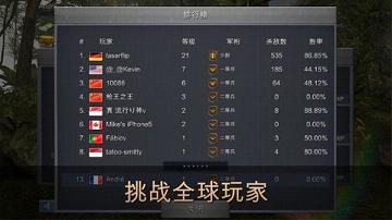 《战地精英》是唯一一款野战环境开放场景射击游戏,向封闭室内钻来钻去的射击游戏说再见吧。拿起最擅长的武器,去真正属于男人的战场,搜索!射击!消灭敌人!酣畅淋漓的即时对战模式,支持断线重连,低延时、0等待,加入游戏即刻进入战场!随时随地畅玩即时对战!