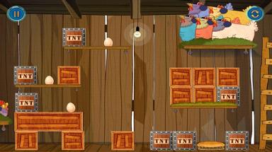 小心鸡蛋!是一款趣味性的益智游戏,你需要通过拆除鸡蛋底下的木箱子来引导鸡蛋掉入鸡窝中,但是千万小心,鸡蛋易碎,千万不要让鸡蛋直接掉在地面,每有一颗鸡蛋掉进鸡窝,你的游戏结果也就越好。虽然不明白为什么鸡窝旁边会有TNT,但是请千万小心!