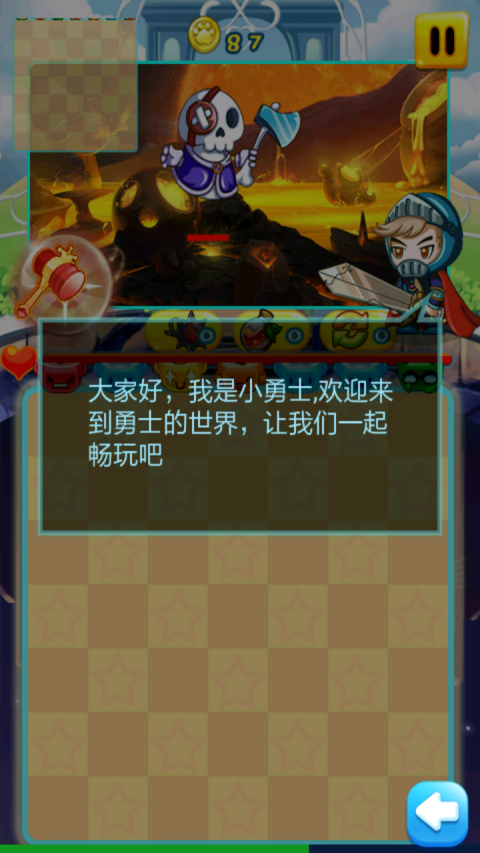 《全民勇士消消乐》这是一款全民消消乐的虚线娱乐小游戏,游戏里可爱的小果冻,利用你的指尖不停滑动将他们吃掉!全新元素Q版画面都在等着你哦,快来玩吧。