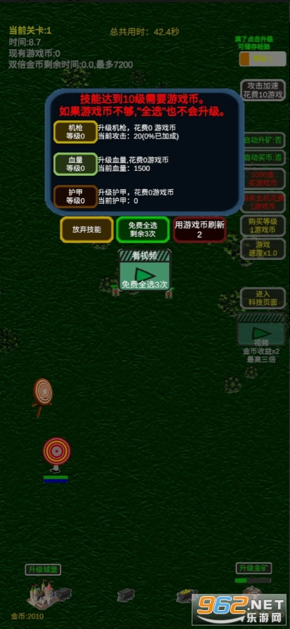 游戏最开始送的一个游戏币是用来保命的,快死的时候买个主机,基本能保证每把前期不会死掉,第一次通关过后科技点升级金币后就变简单了,可以挑战更高层数的boss,每10波一个