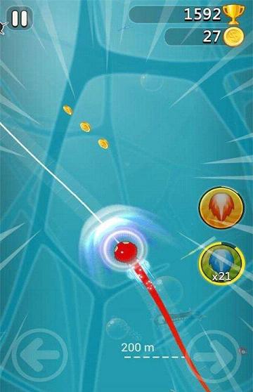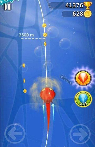 游戏中所有操作只要两根手指就可以完成,玩家通过点击左右箭头按钮来操控小蝌蚪的移动、躲避障碍。竖版俯视视角的游戏,每次跑满一定距离,类似于闯过一关,会触发游戏的超级奖励模式。在超级奖励模式中铺天盖地的都是等着被吃掉的金币,满屏的金币就怕你忙不过来。