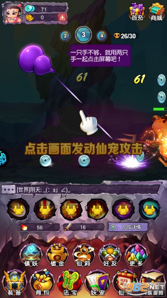 创新式休闲玩法,轻松放置就能够突破重围,手动助力挑战最快手速,点击越快伤害越高,全新玩法体验不一样的葫芦娃世界;