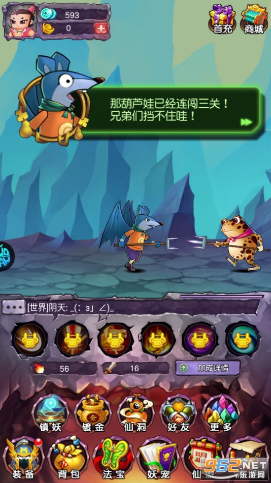 一款经典动画改编而来的放置RPG,轻松的打怪玩法,经验银币快速到手,更有原味剧情,让你梦回童年重拾感动,降妖除魔,妖洞无底战斗不息,你还在犹豫什么?